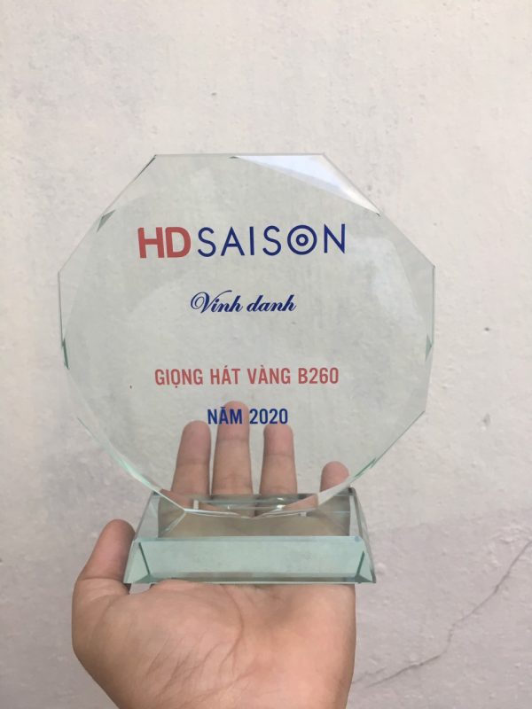 Kỷ niệm chương thủy tinh lục giác đều in ấn theo yêu cầu làm quà tặng doanh nghiệp